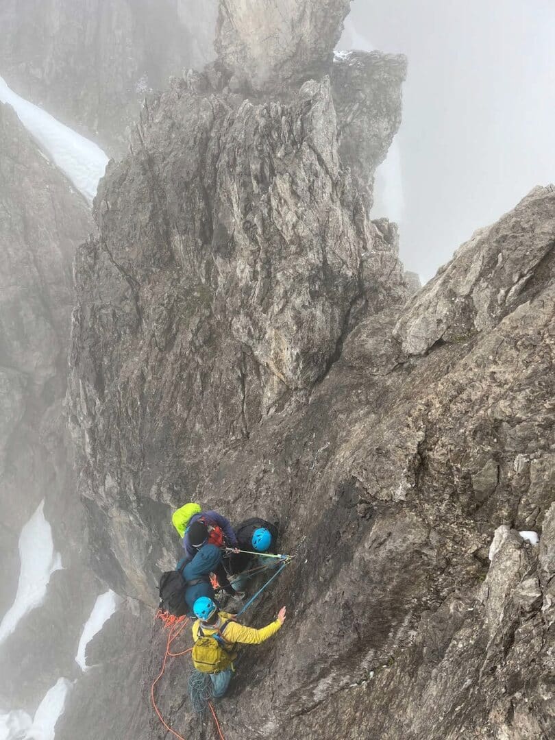 Im 6-tägigen Kurs vom 21.-27.06.2026 in den Lechtaler Alpen klettern wir Mehrseillängentouren und üben die Verwendung der Halbseiltechnik, das Legen von mobilen Zwischensicherungen, wir bauen Standplätze, klettern in 2er und 3er Seilschaften, und machen uns vertraut mit dem Abseilen im alpinen Gelände. Wir beschäftigen uns mit sorgfältiger Tourenplanung, mit der Wettervorhersage im Gebirge, mit Orientierung und dem kritischen Lesen von Kletterführern. Außerdem lernen wir Techniken der behelfsmäßigen Bergrettung und dem Gehen in unwegsamen Gelände.