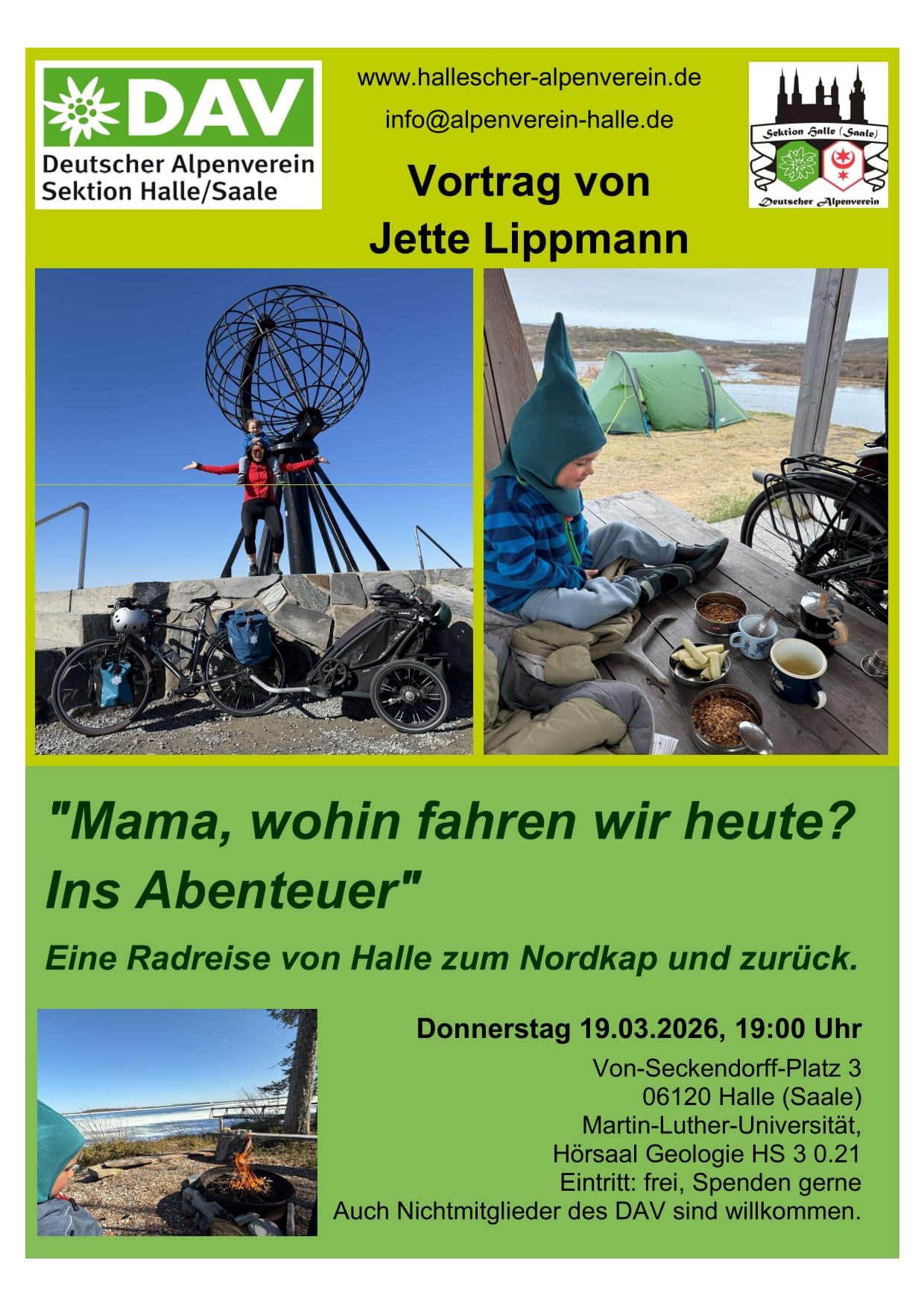 Der Eintritt ist frei. Für professionelle Vorträge ist der Eintritt für Nichtmitglieder DAV 5€, Spenden sind generell möglich.