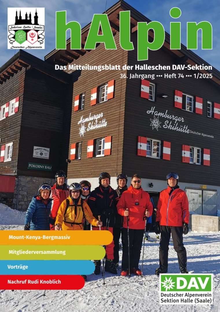 Einmal Mal im Jahr erscheint unser Mitteilungsblatt „hAlpin„: Neuigkeiten zur Sektion, Tourenberichte und Informationen – von Mitgliedern für Mitglieder. Hier findest Du die letzten Ausgaben zum Download. Hast Du auch Touren, von der Du berichten oder ein Thema, welches Du mit der Mitgliedschaft teilen möchtest? Dann schreib der Redaktion. Wir freuen uns über jeden Beitrag.